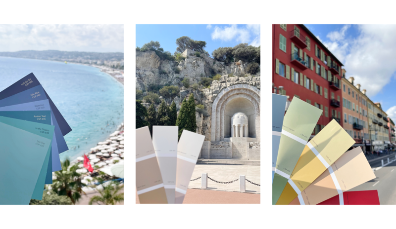 From the pastel hues of Cours Saleya, to the Tangelo* of the buildings of the old town, the green Chimichurri* of the lush gardens of Castle Hill, to the depths of the Blue Nile* of the Mediterranean Sea.